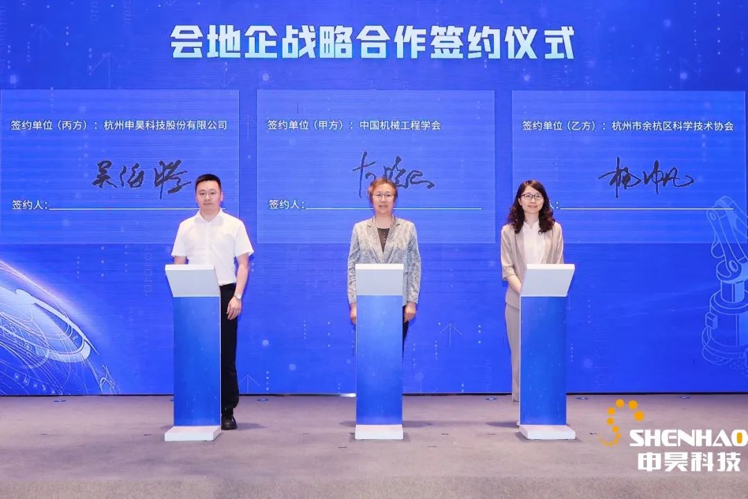 在智能制造數(shù)字化轉型與數(shù)字價值主題論壇中,申昊科技吳海騰副總經(jīng)理代表公司與中國機械工程協(xié)會、杭州市余杭區(qū)科學技術協(xié)會簽署了會地企戰(zhàn)略合作協(xié)議。