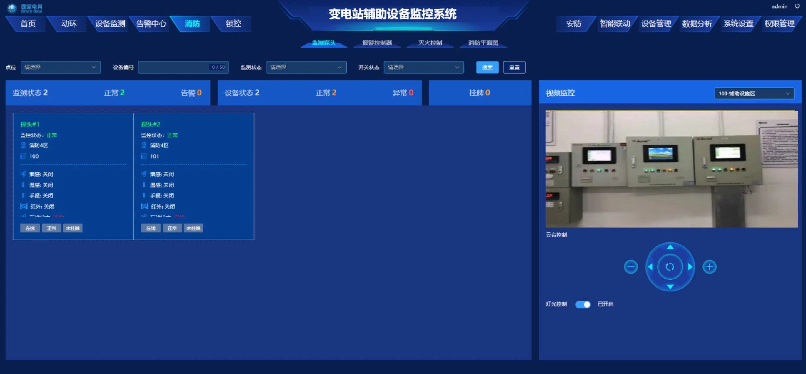 對(duì)變電站內(nèi)的消防設(shè)備進(jìn)行實(shí)時(shí)監(jiān)控,包括探頭、煙霧報(bào)警器、溫度傳感器等,及時(shí)發(fā)現(xiàn)火災(zāi)隱患,對(duì)變電站內(nèi)的滅火設(shè)備進(jìn)行控制,提高變電站的安全性。
