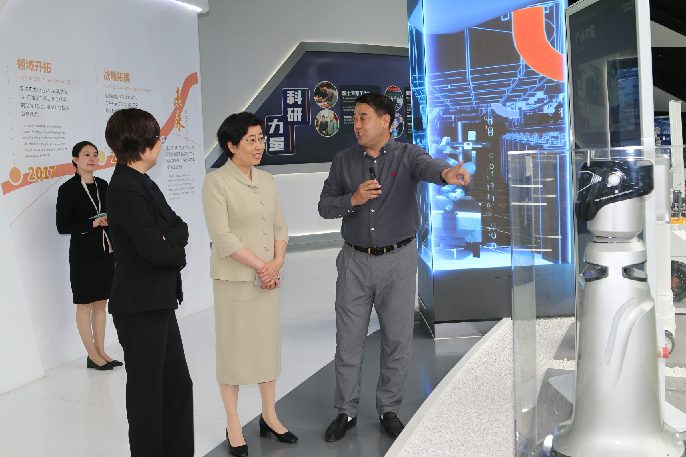 陳常務副市長一行參觀了電力館、軌道交通、石油石化館、未來館、數(shù)據(jù)中心,考察了申昊科技的前沿技術、創(chuàng)新成果及人工智能產(chǎn)品應用情況。