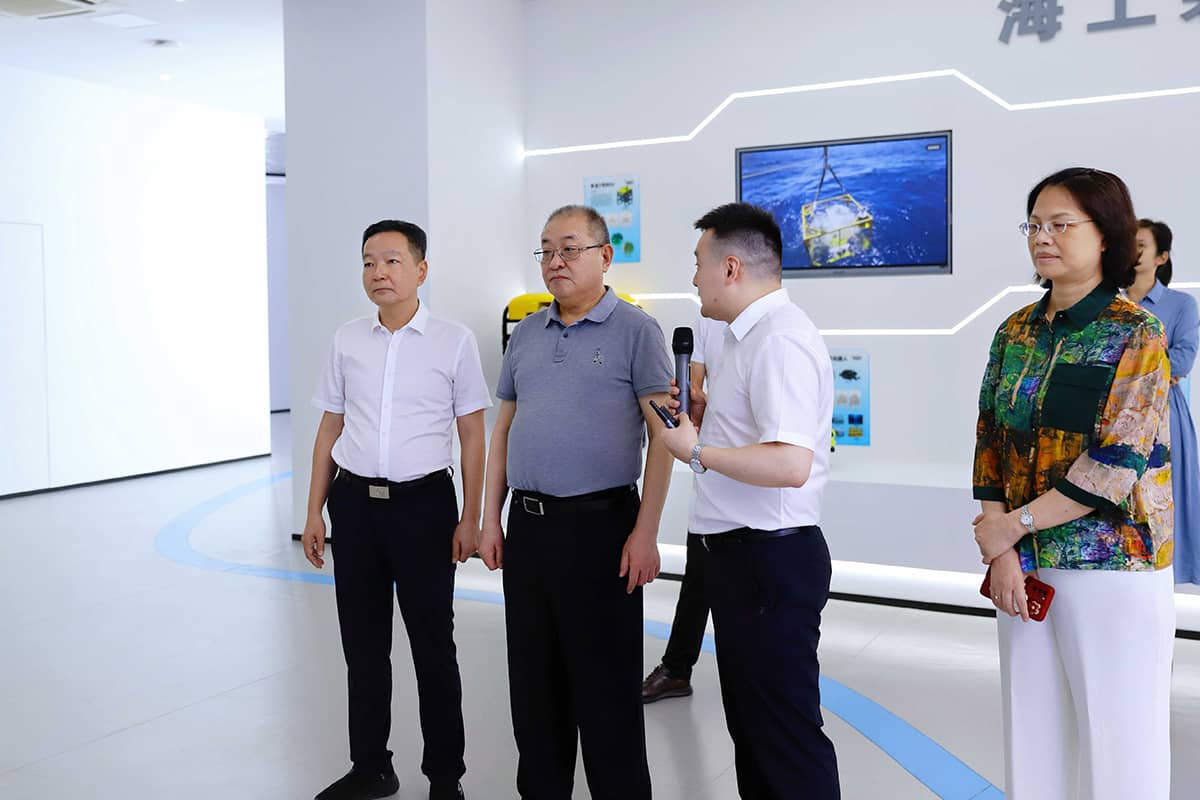 在調研過程中,吳海騰向各位領導闡述了實驗室的發(fā)展情況,并展示了實驗室各項成果,包括“申龍?zhí)枴彼聶C器人、三維聲吶、水下安防平臺等,并詳細匯報了人工智能產(chǎn)品在海洋測繪、海底資產(chǎn)數(shù)據(jù)發(fā)掘、低空經(jīng)濟發(fā)展等領域的創(chuàng)新技術和應用。